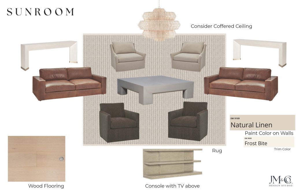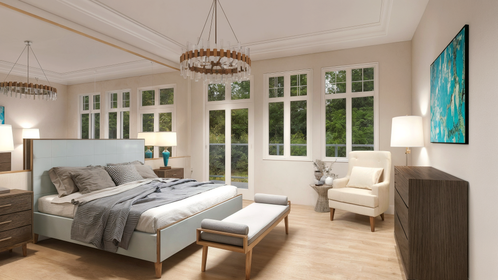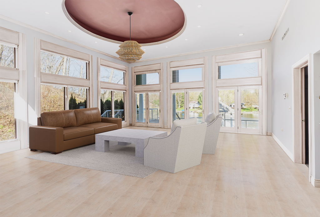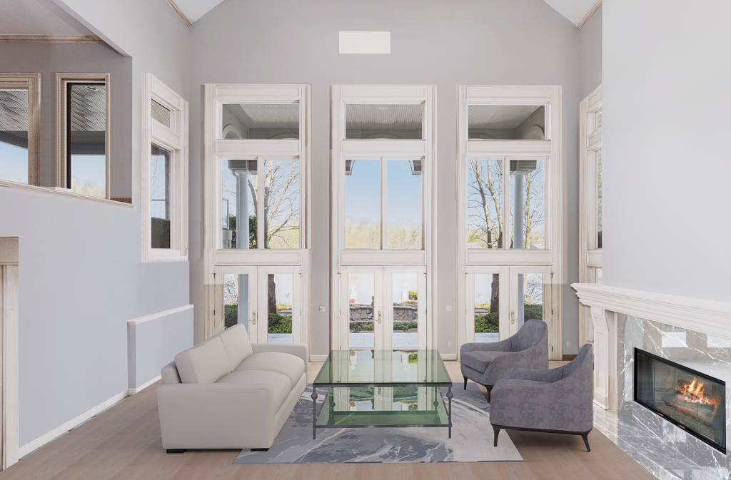 For the Sandy Hollow project, our client approached us with newly captured property photos, detailed floor plans, a full spec sheet, and detailed instructions for renovation. Their objective was to transform existing photos into realistic 3D renderings that reflect the property’s future look, incorporating architectural changes, updated materials, and new interior styling. For this project, our 3D team reimagined the home: removing gazebos and stair railings from exterior shots, squaring off rounded pillars and windows, updating wall colors, flooring, lighting, and trim throughout the interiors. Spaces like the sunroom, kitchen, master suite, and grand room were fully redesigned per the plans, down to the furniture layout and detailed changes.